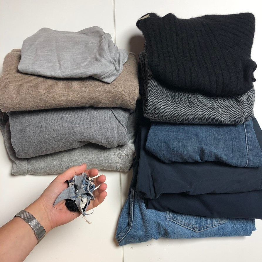 Så lite avfall blir det av å reparere ti plagg. Foto: Fremtind